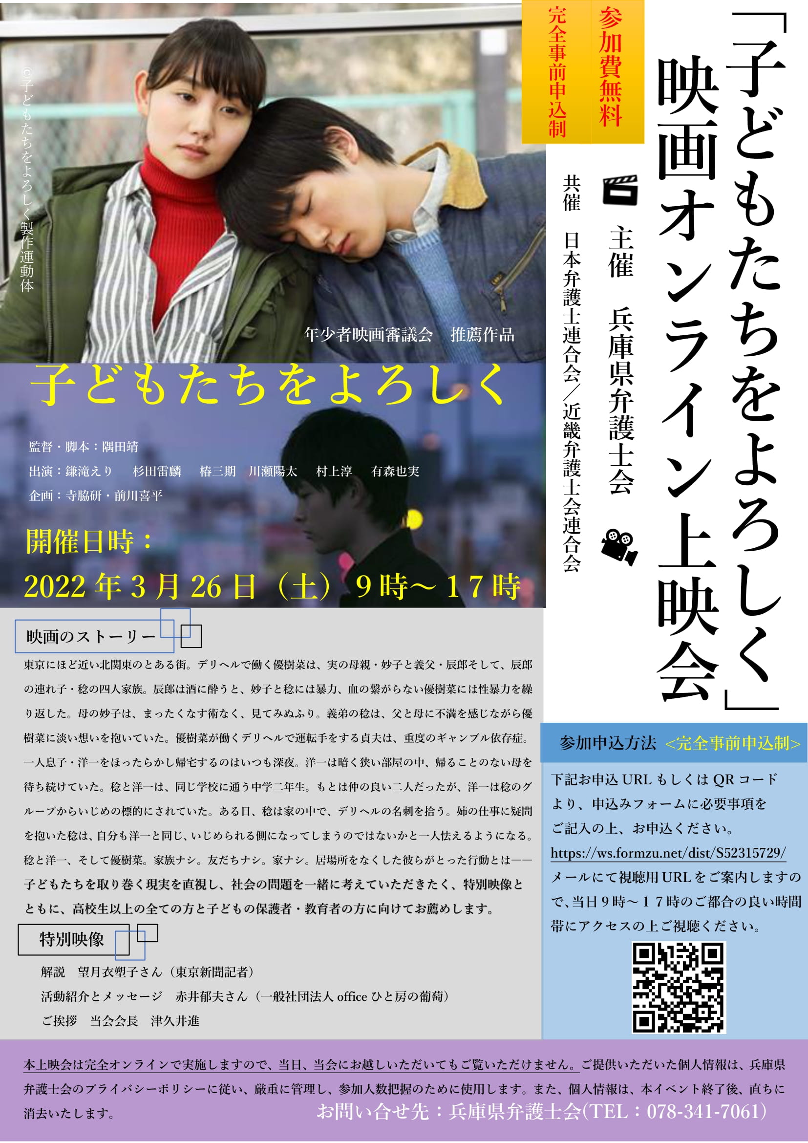 兵庫県弁護士会では、下記のとおり、映画「子どもたちをよろしく」の上映会を実施します。