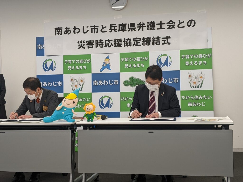 南あわじ市との間で、災害時における連携協力に関する協定を締結しました。