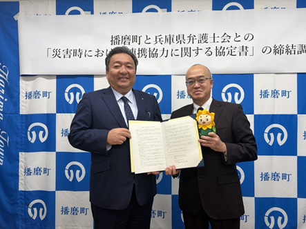 播磨町との間で、災害時における連携協力に関する協定を締結しました。