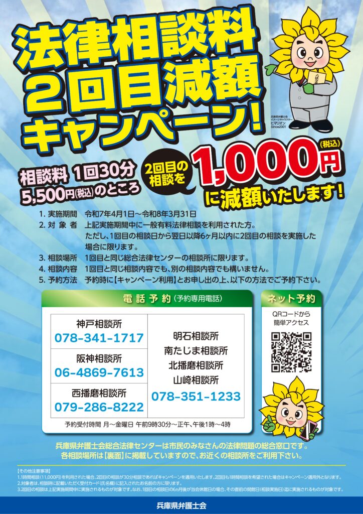 2026年3月31日をもって、法律相談料2回目減額キャンペーンは終了しました。